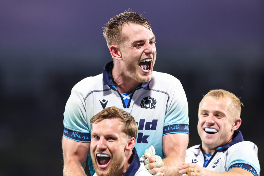 The game was still in full swing as the clock ticked over into the 86th minute, but Scotland’s dogged defence paid off, and the ball was turned over in the ruck. Dobie flung it back to Hutchinson, who gratefully booted the ball into the stands, bringing the game to a close.