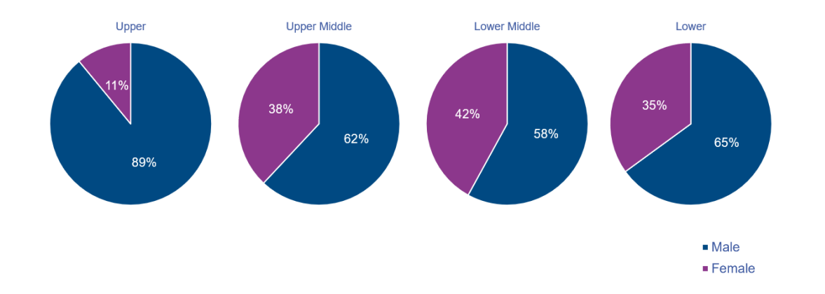 Proportion of Males and Females in each quartile pay band.