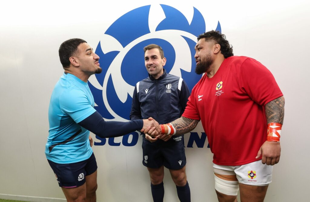 Skippers Sione Tuipulotu and Ben Tameifuna have met with referee Luc Ramos and the coin has been tossed, with Scotland kicking off towards south stand of Scottish Gas Murrayfield.
