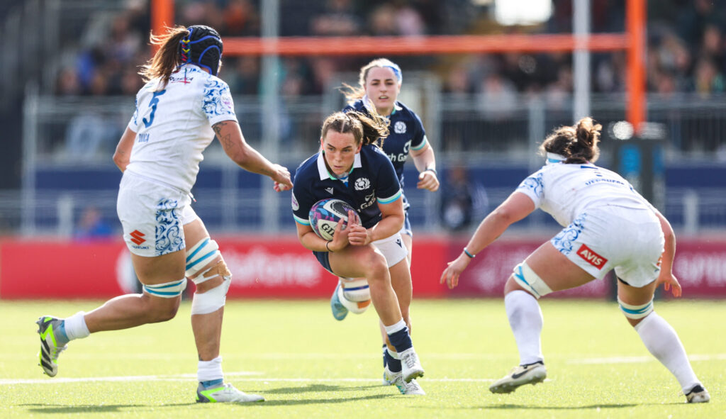 EDINBURGH, SCOTLAND – APRIL 13: Scotland’s Emma Orr in action during a Guinness Women’s Six Nations match between Scotland and Italy at The Hive Stadium, on April 13, 2025, in Edinburgh, Scotland. (Photo by Ewan Bootman / SNS Group)
