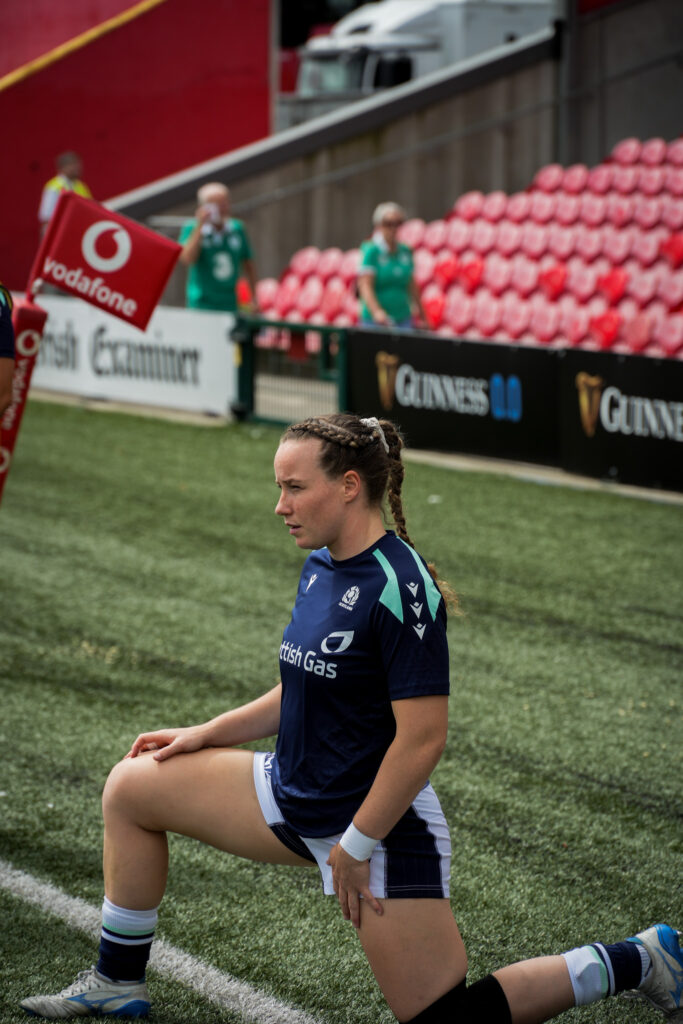 Scotland inside centre Thomson got the afternoons’ match underway and after a few moments it looked as if Ireland would run in for the first score of the afternoon thanks to a break from speedy scrum-half Molly Scuffil-McCabe – but she was tracked down by Scotland winger Lucia Scott with the tackle completed by outside centre Orr. In her first start at blind-side flanker, Rachel McLachlan made it to the breakdown to force a textbook turnover for Scotland.