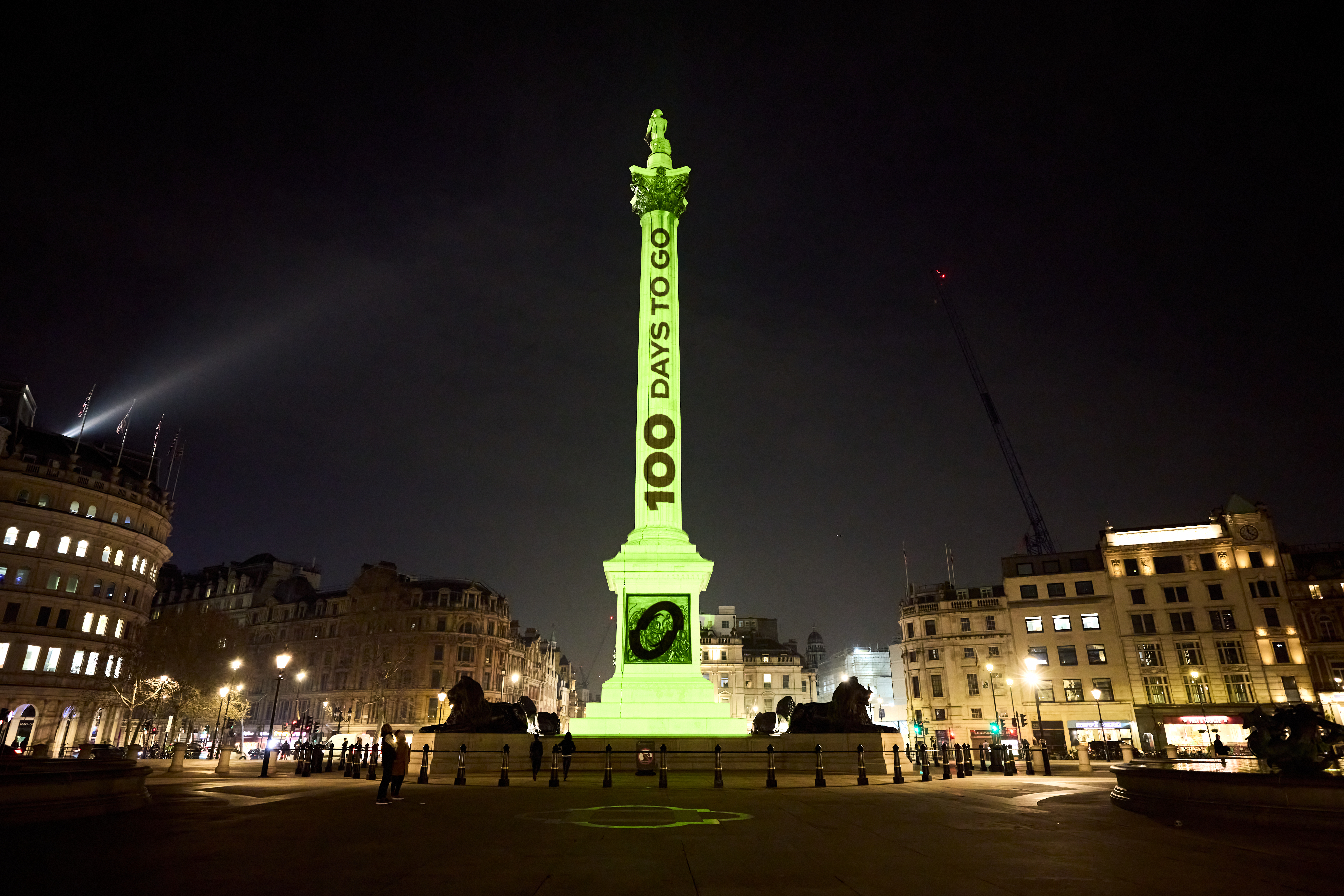 LONDON, ENGLAND - MARCH 23: A general view as Nelson's Column is lit up to mark 100 days until rugby union's newest global competition, Nations Championship begins at Trafalgar Square on March 23, 2026 in London, England. All roads lead to London as the inaugural Finals Weekend is held at Twickenham's Allianz Stadium in November 2026. (Photo by Karl Bridgeman/Getty Images for Nations Championship)