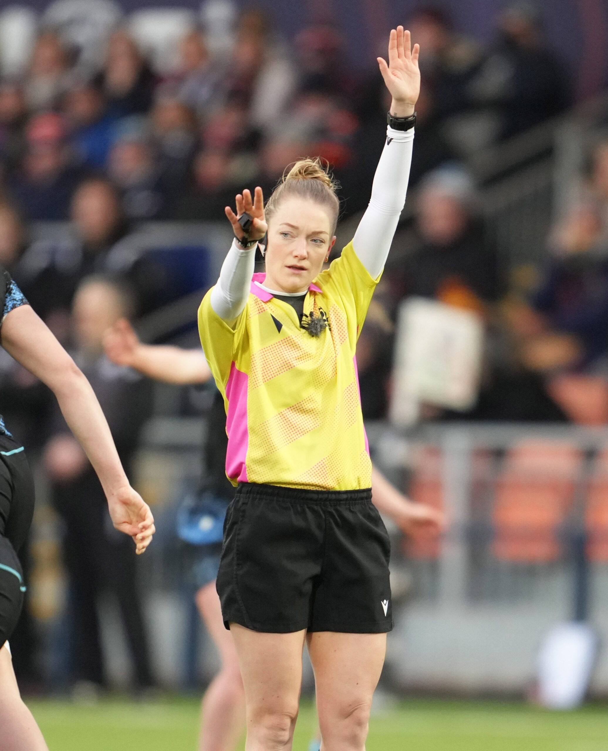 EDINBURGH, SCOTLAND - DECEMBER 30: The referee during a Celtic Challenge match between Edinburgh Rugby and Glasgow Warriors at the Hive Stadium, on December 30, 2023, in Edinburgh, Scotland. (Photo by Simon Wootton / SNS Group) Sam Grove-White and Hollie Davidson will referee two matches each, while Ru Campbell has twice been selected as an assistant referee. Mike Adamson and Andrew McMenemy have been selected as Television Match Officials (TMO) and Foul Play Review Officers (FPRO).