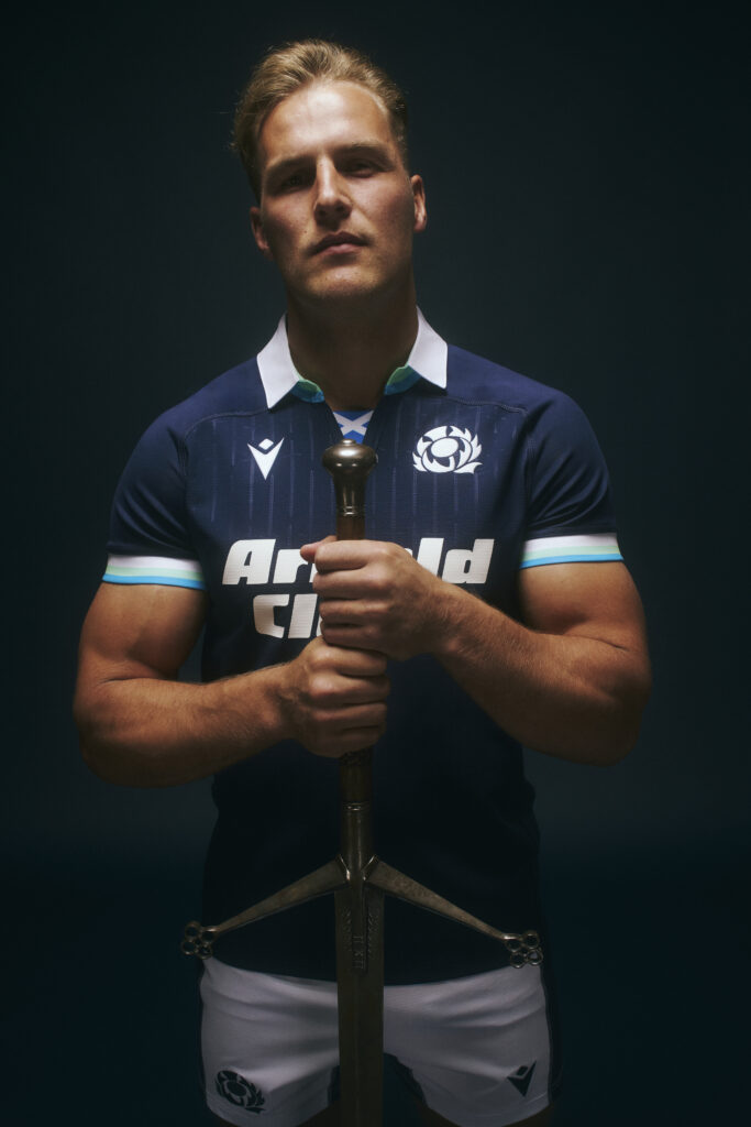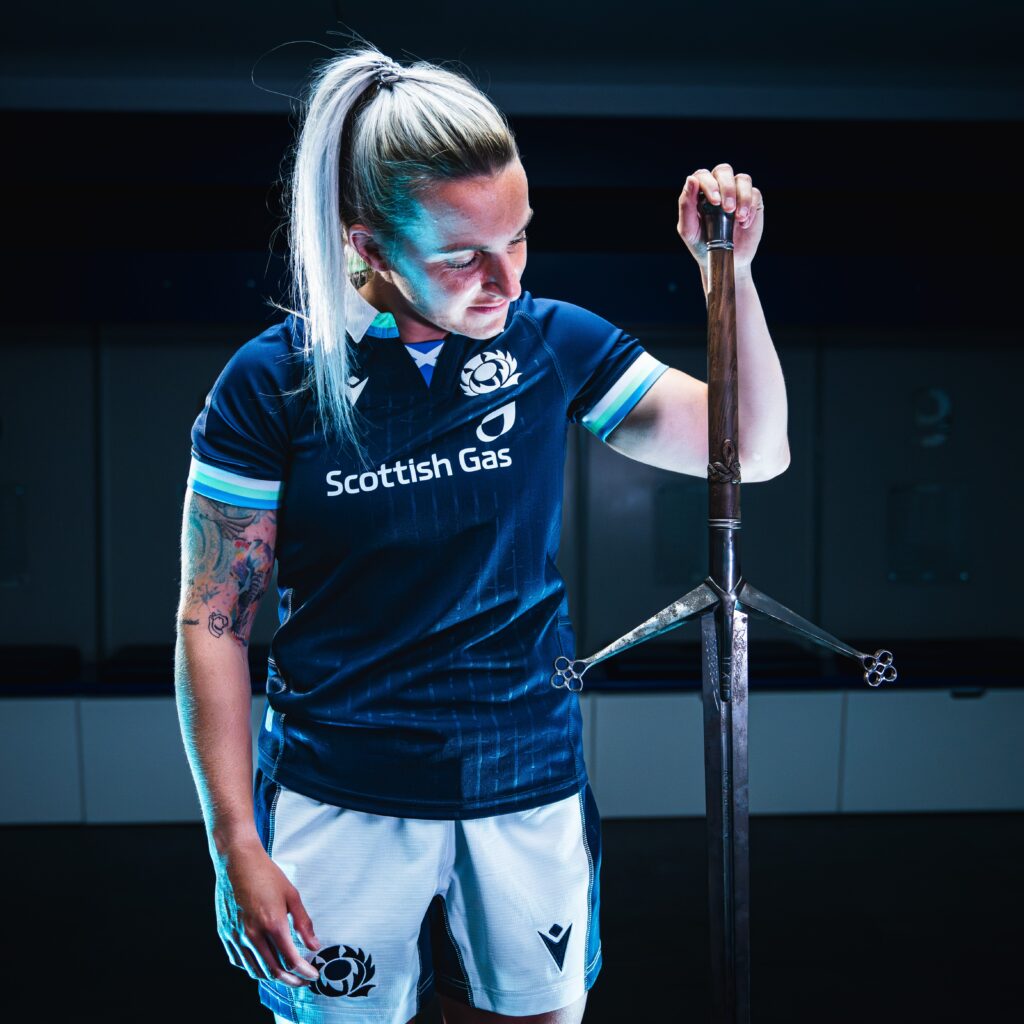6 Aug 2024A closer look at the 2024/25 Home Kit, modelled by our National Team stars. The shirt features embossed graphics at the front and back, formed by vertical designs of ‘Claymores’, the ancient two-handed swords used by the Scottish clans in the late medieval period. The word ‘Claymore’ comes from the Scottish Gaelic’ claidheamh-mòr’, which means ‘large sword’. The Claymore represents a historic symbol of Scotland and the Scottish spirit. The National Team changing room, used by both Scotland Men and Scotland Women at Scottish Gas Murrayfield, is home to Scottish Rugby’s very own Claymore.