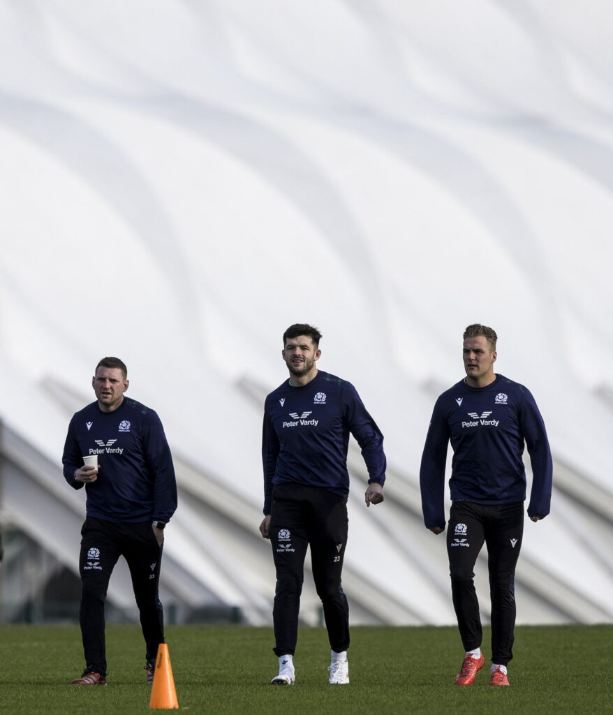 The Scotland men's squad are preparing for Saturday's Calcutta Cup match against England at their training HQ in Edinburgh.