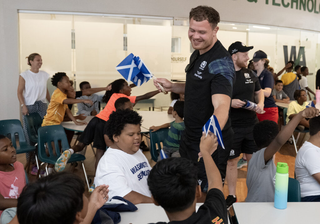 11 Jul 2024As part of the USA leg of the Skyscanner Americas Tour, players from both sides visited local school, Washington Jesuit Academy, to spread the game of rugby. Together with DC Central Kitchen, a local non-profit that provides food for underprivileged people, the players served lunch for the kids as well as taking part in a bit of rugby action. Some images kindly provided by Jack Megaw / AEG Rugby.