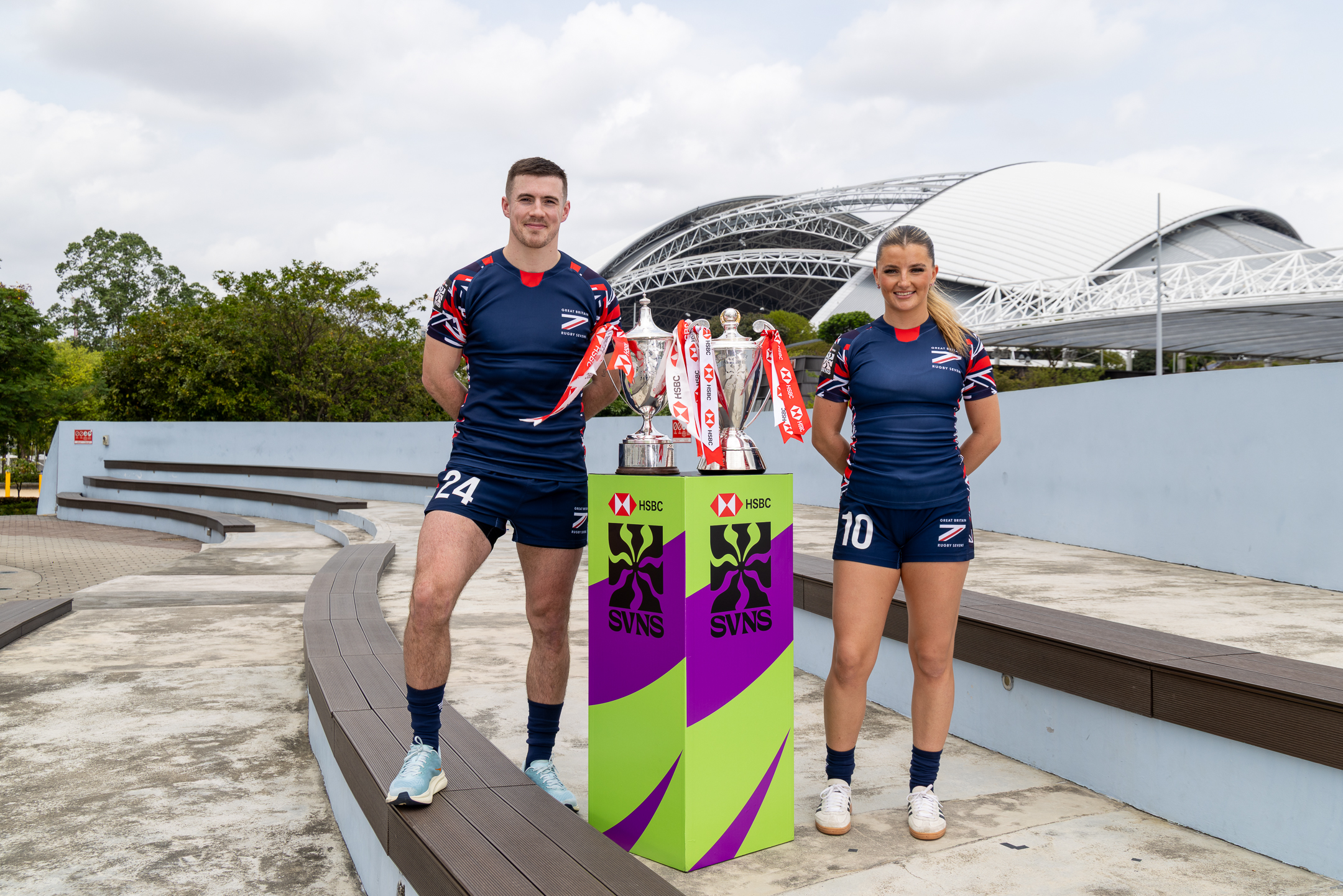 SINGAPORE - January 27: Great Britain team captains pose for a photo in advance of the 2026 HSBC SVNS Singapore at National Stadium on January 27, 2026 in Singapore. (Photo by Alex Ho / World Rugby)