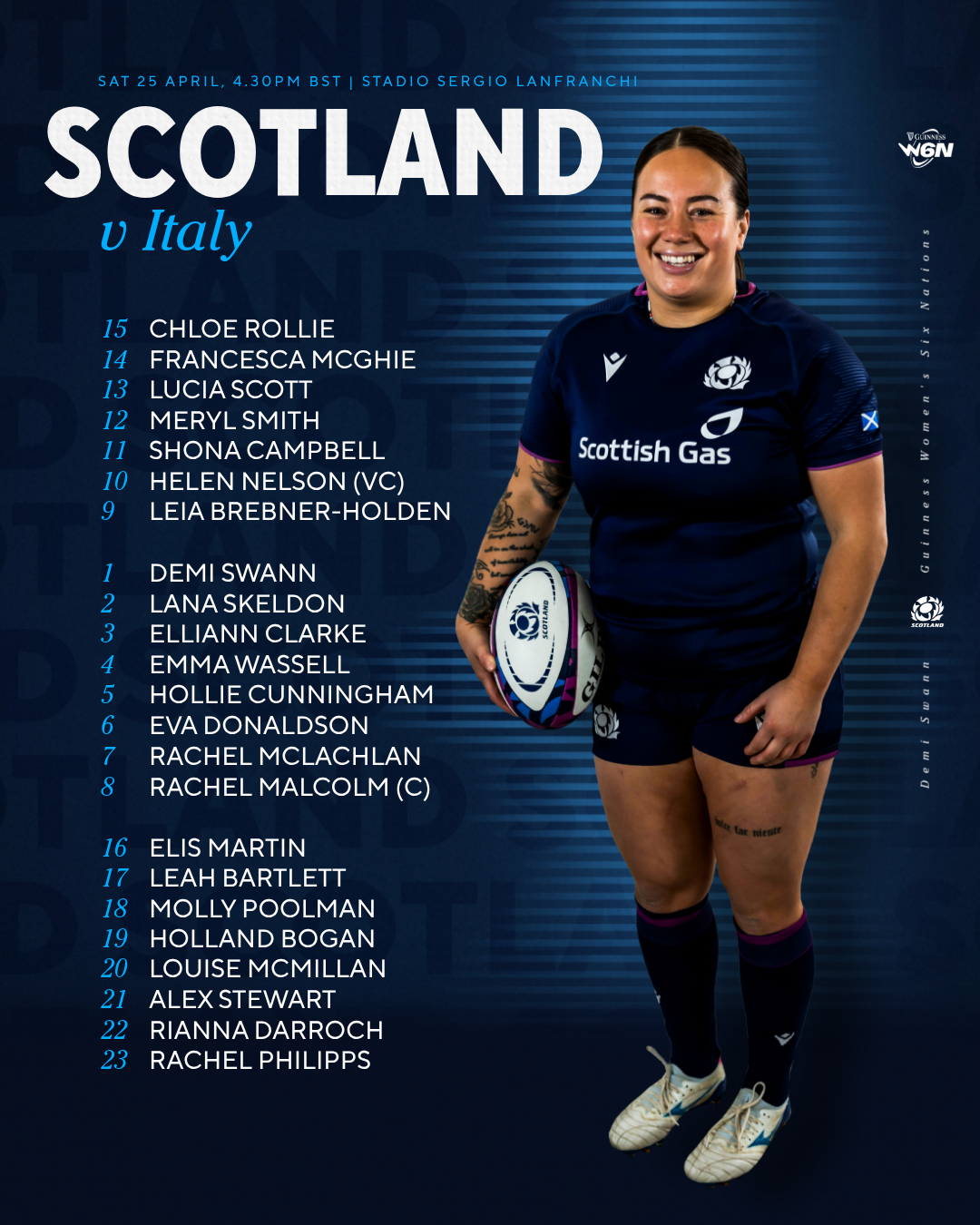 There are five changes to the XV ahead of this weekend’s visit to Italy, with there being a first-ever Scotland Women start for prop Demi Swann and maiden inclusions in the XV during this Six Nations campaign for forwards Eva Donaldson and Rachel McLachlan and backs Lucia Scott and Francesca McGhie.