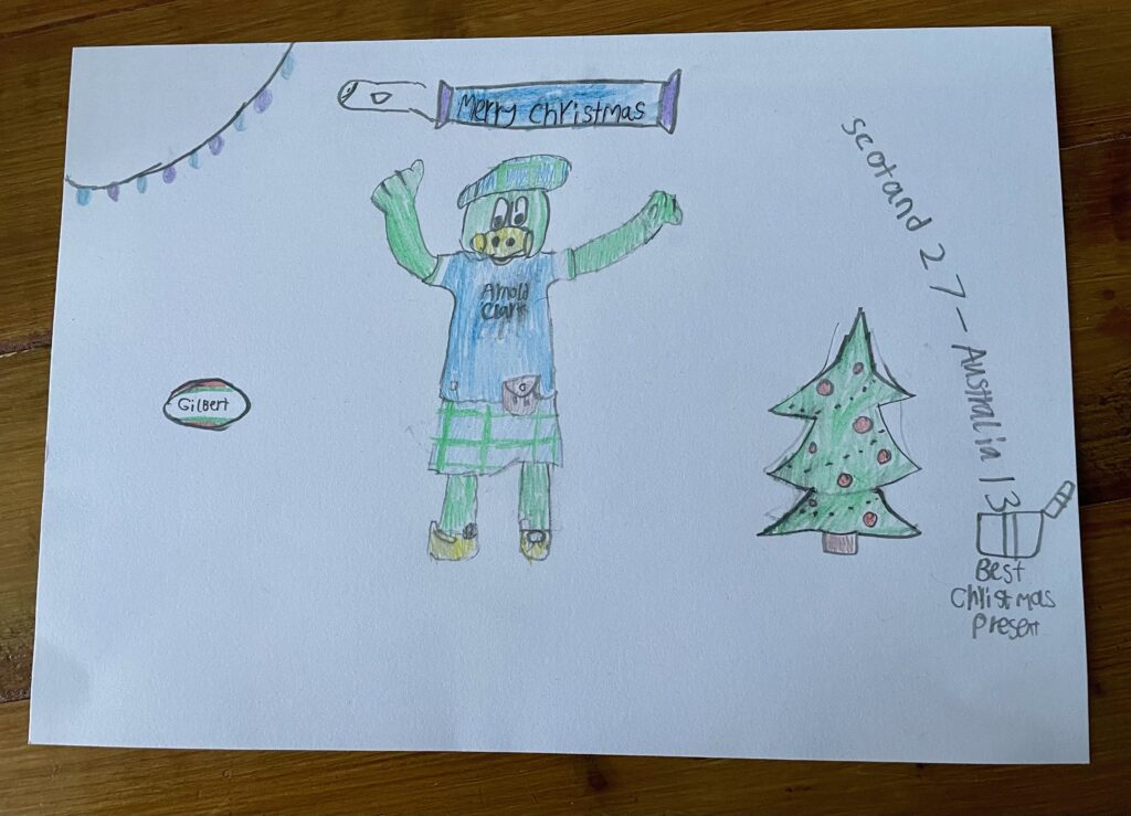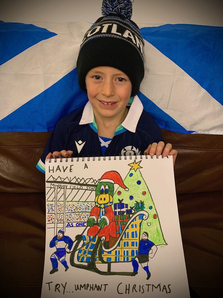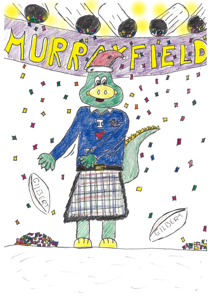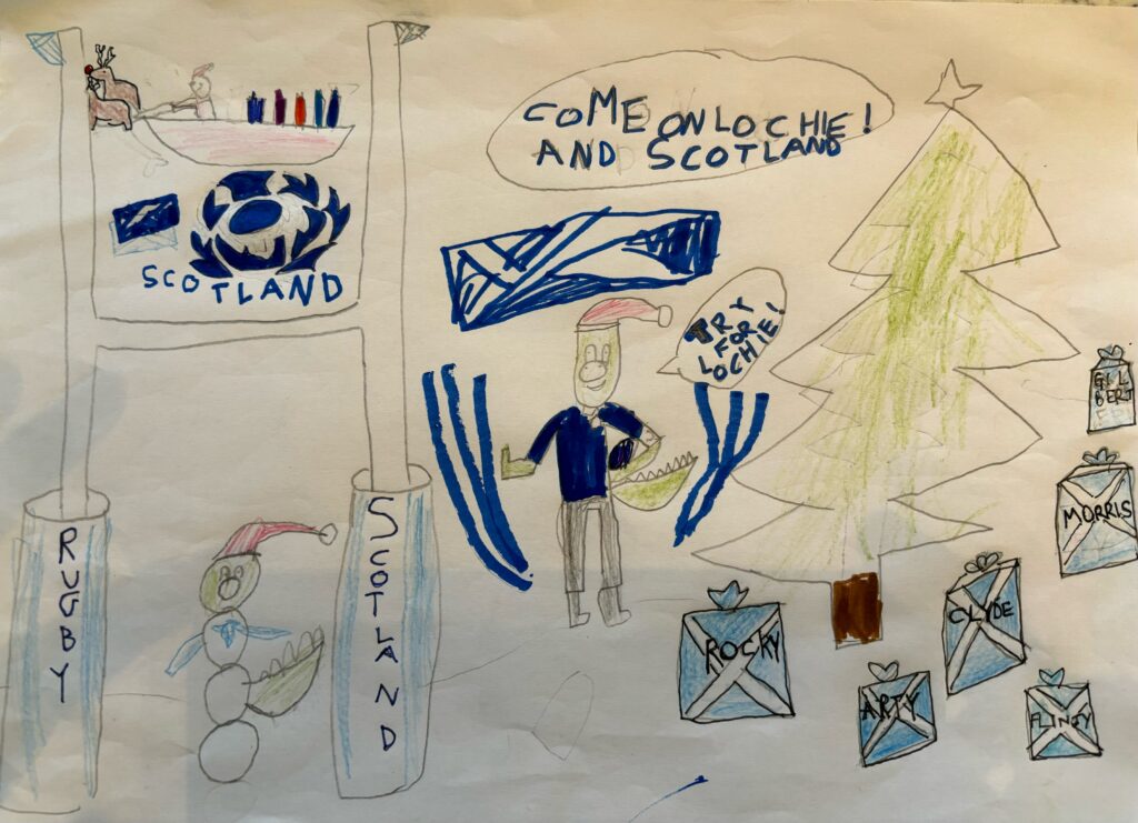 18 Dec 2024This year, Lochie has a special holiday surprise planned for his mascot friends: a behind-the-scenes stadium tour at Scottish Gas Murrayfield. But he’s missing one thing—a Christmas card. We set the challenge to our young fans to help him design one, and they responded with over 100 entries! Check them out here.