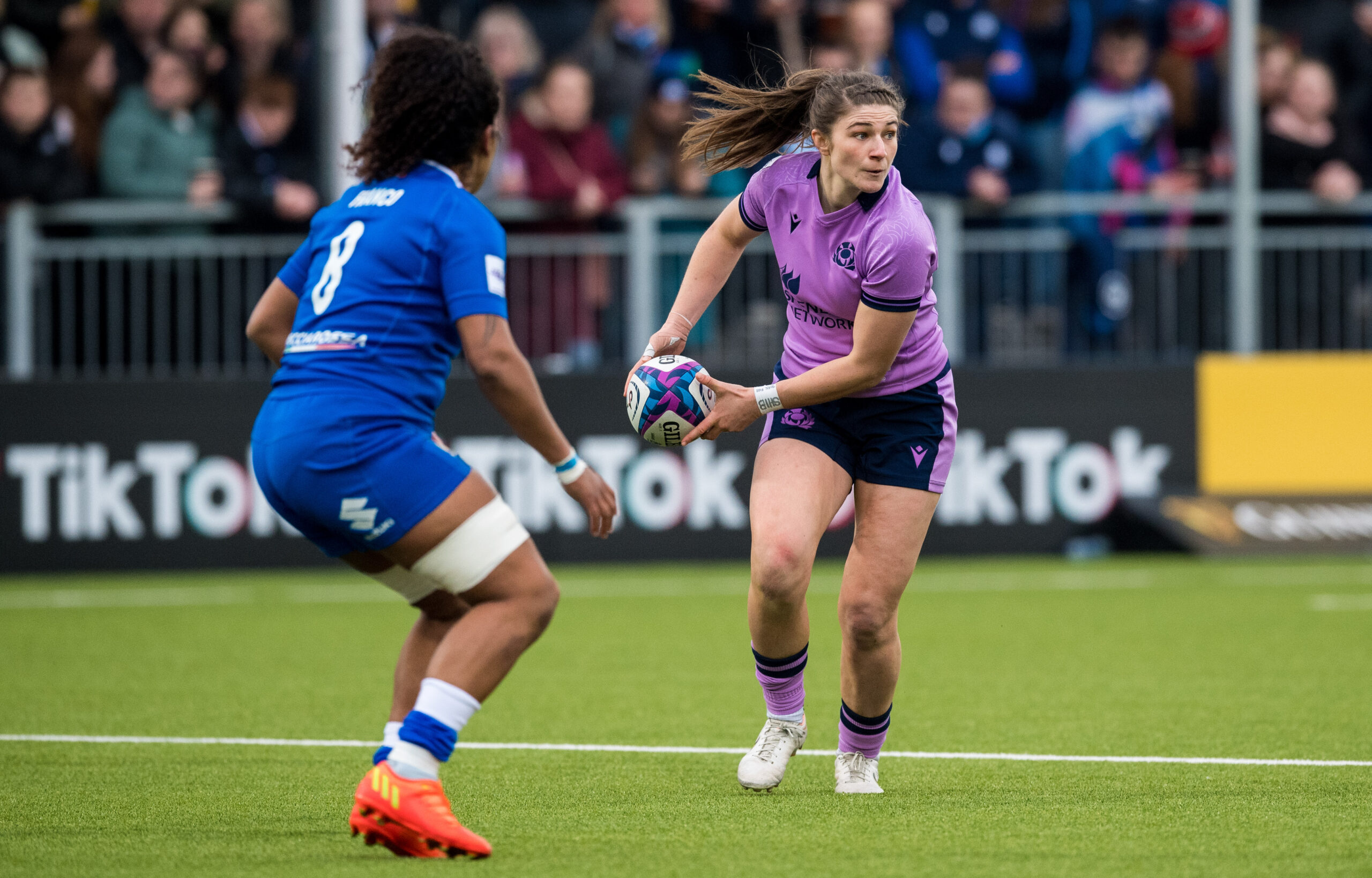 In last week’s game, Scotland beat Italy 29-21 in a thrilling fixture at DAM Health Stadium on Saturday, thanks to five tries from the forwards, and conversions from Helen Nelson on her 50th appearance for Scotland.