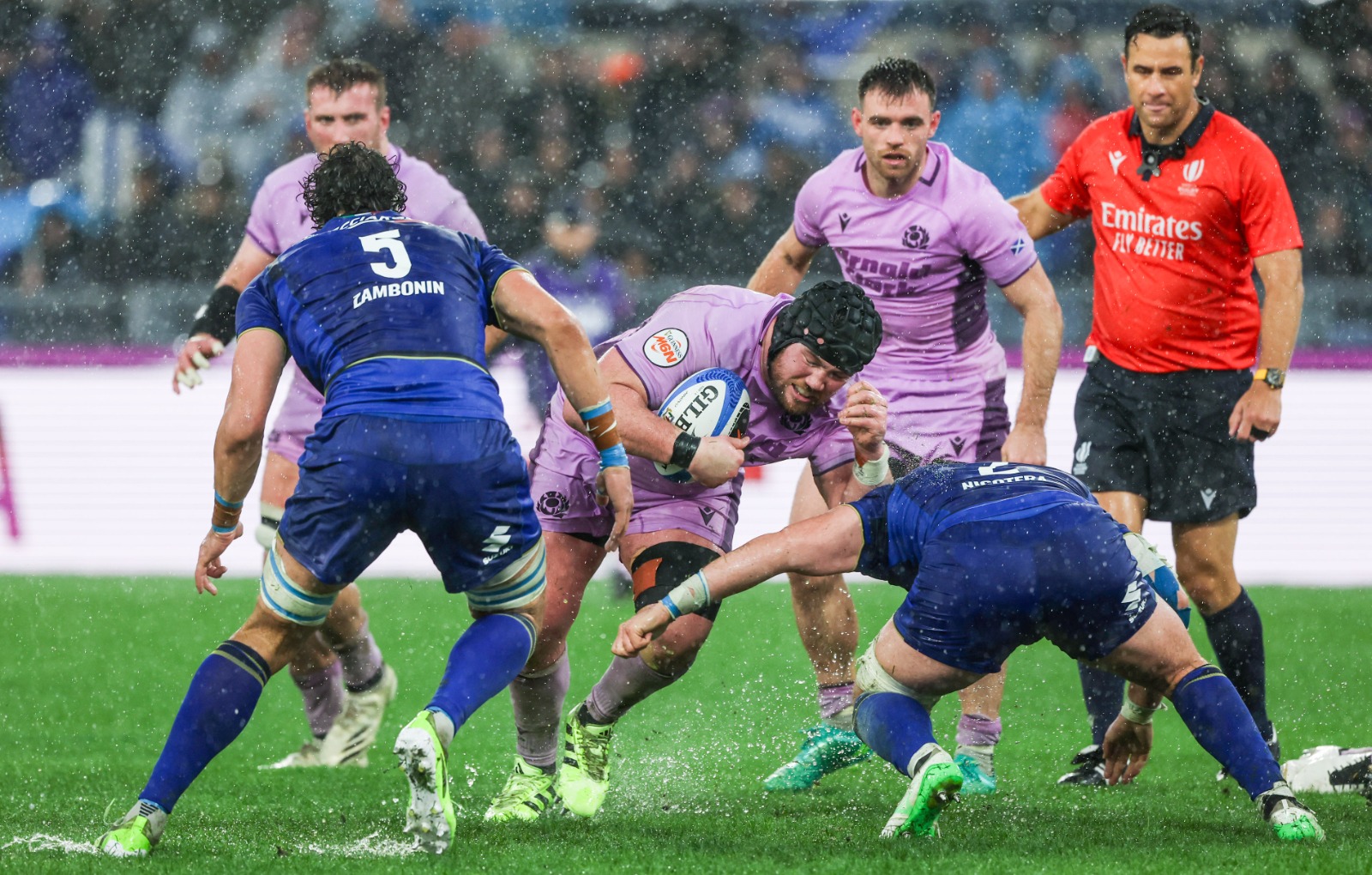 Scotland were edging towards the Italian line and had a penalty advantage in the shadow of the posts, when the TMO alerted the referee to a head contact by substitute hooker George Turner on Manuel Zuliani. Turner was yellow carded and the penalty chance was overturned.