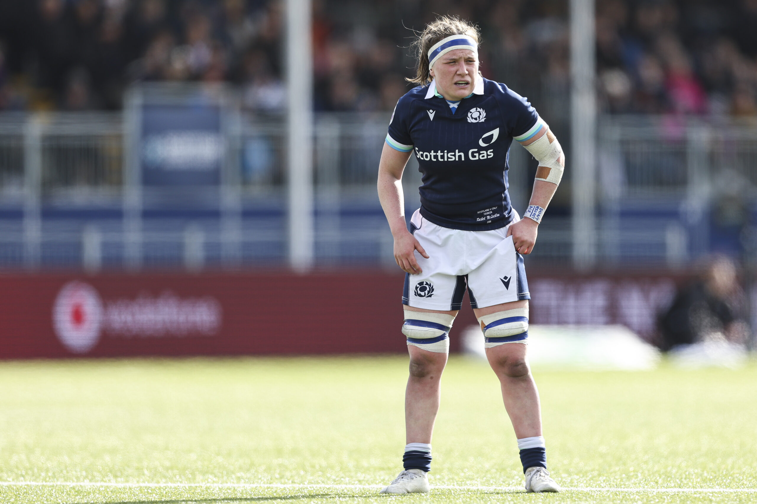 EDINBURGH, SCOTLAND - APRIL 13: Scotland's Rachel McLachlan in action during a Guinness Women's Six Nations match between Scotland and Italy at The Hive Stadium, on April 13, 2025, in Edinburgh, Scotland. (Photo by Ewan Bootman / SNS Group)