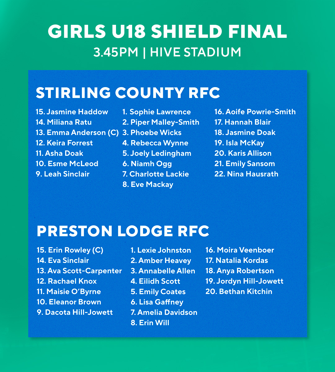 Stirling County put in a commanding performance to win the Girls U18 Shield Final. They worked seamlessly as a team with some standout individual performances, including a hat-trick from scrum half, Leah Sinclair.