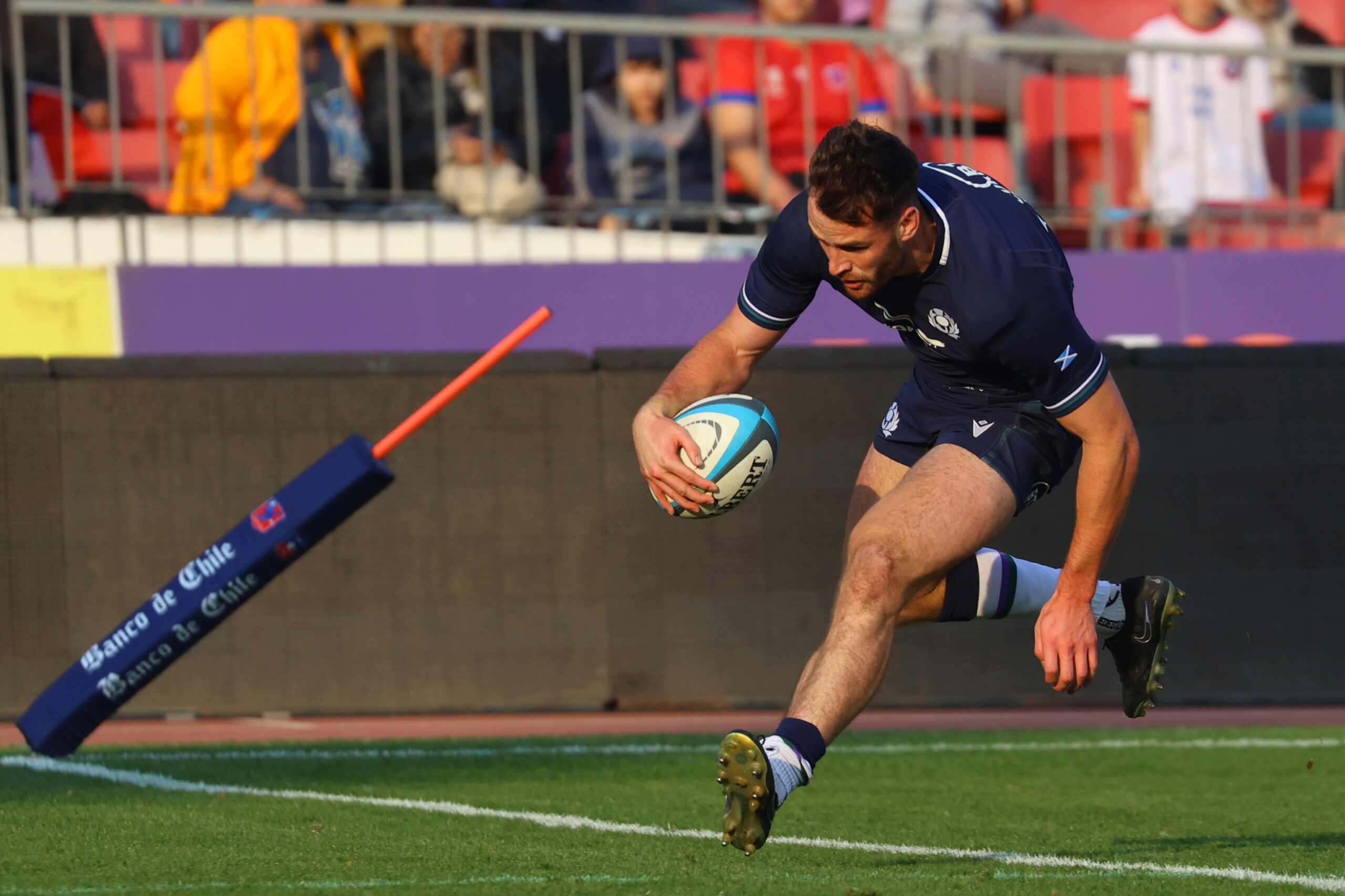 SANTIAGO, CHILE - JULY 20: Matt Currie of Scotland scores a try during a test match between Chile and Scotland at Estadio Nacional de Chile on July 20, 2024 in Santiago, Chile. (Photo by Marcelo Hernandez/Getty Images for Scottish Rugby) Scotland had much of the early ball, and in the 5th minute the first line break came from Ben Healy. He charged down the left side of the field, getting tackled just outside Chile’s 22, but two phases later Steyn knocked on. Scotland were presented with a real opportunity when they won a penalty at the scrum and kicked to the right corner, but the maul went awry and Chile won themselves a penalty.