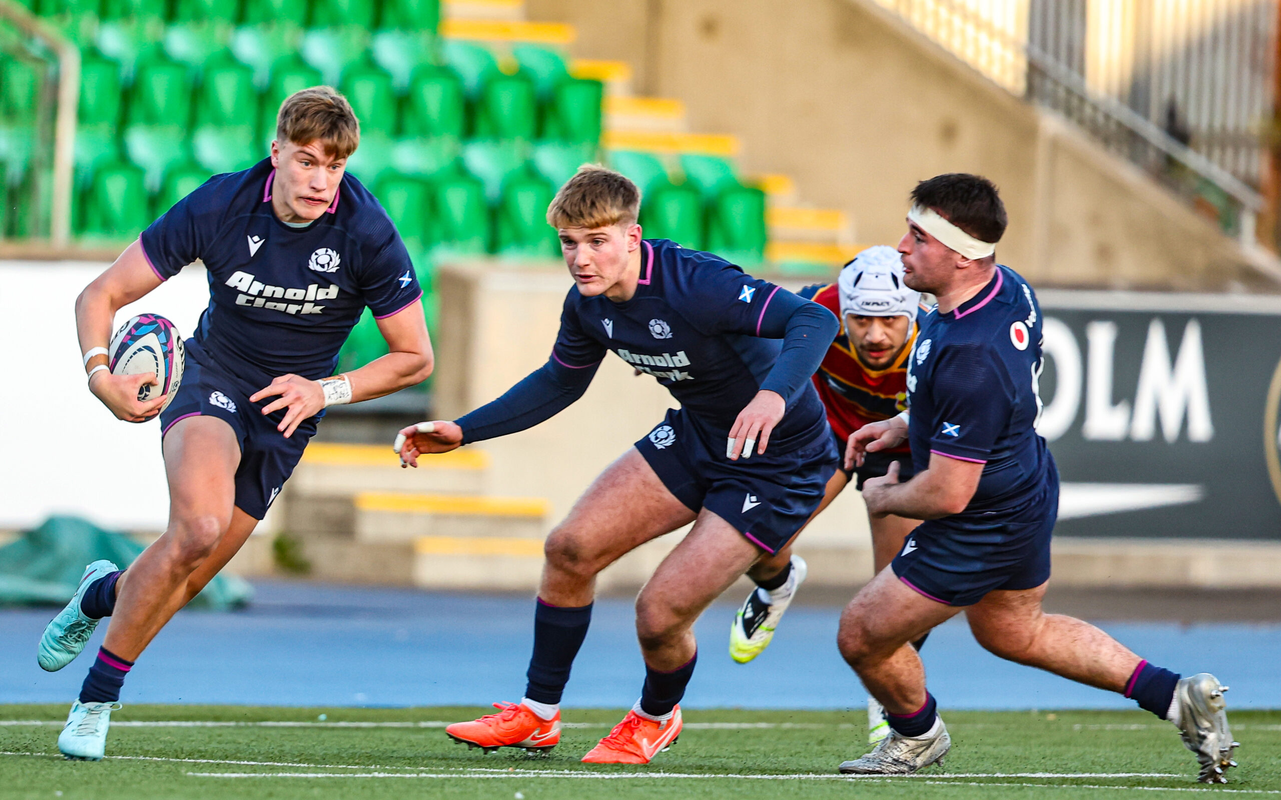 GLASGOW, SCOTLAND - NOVEMBER 17: Scotland's Jack Brown in action during a friendly match between Emerging Scotland and Tonga XV, at Scotstoun Stadium, on November 17, 2025, in Glasgow, Scotland. (Photo by Ross MacDonald / SNS Group) In the opening minutes Scotland broke down the left, with Lewis Wells finding Ben Afshar, but his pass inside which would have created a certain try was intercepted.