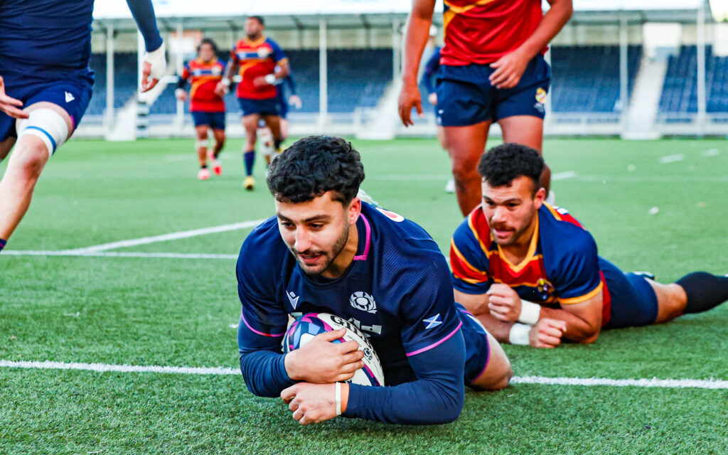 With the final play Emerging Scotland got their second, as Jack Brown quickly got the ball away to Johnny Ventisei on the left, and he found Afshar on the wing who wriggled out of one tackle and grounded.