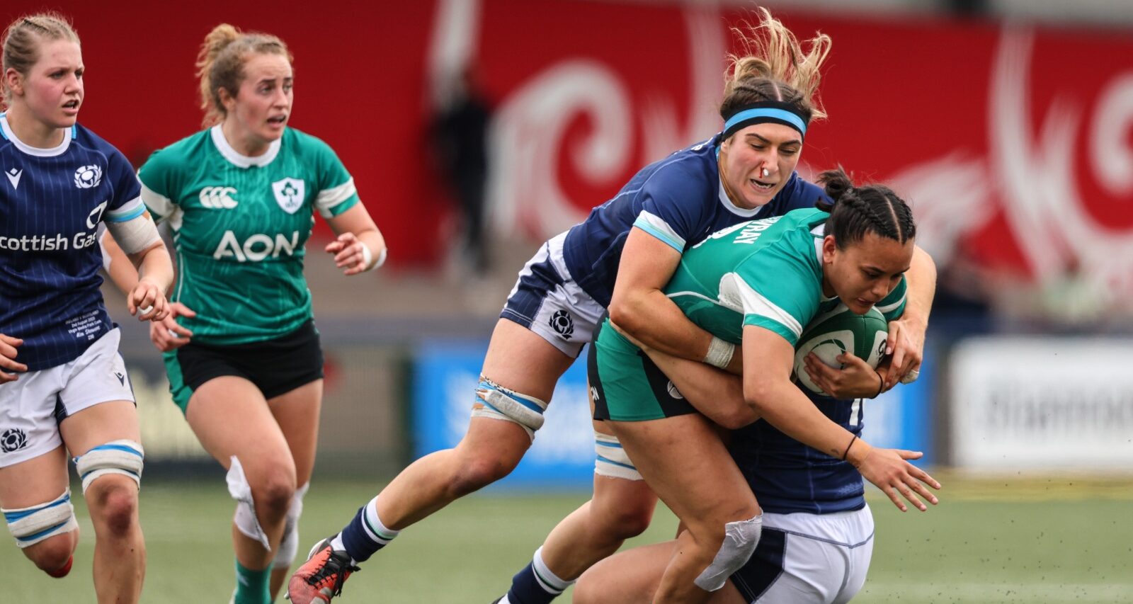 With only four minutes left in the game the visitors found a gap in the Scottish maul defence which allowed replacement Deirbhile Nic a Bháird to break away and run in for the hosts fifth try of the afternoon (27-21)