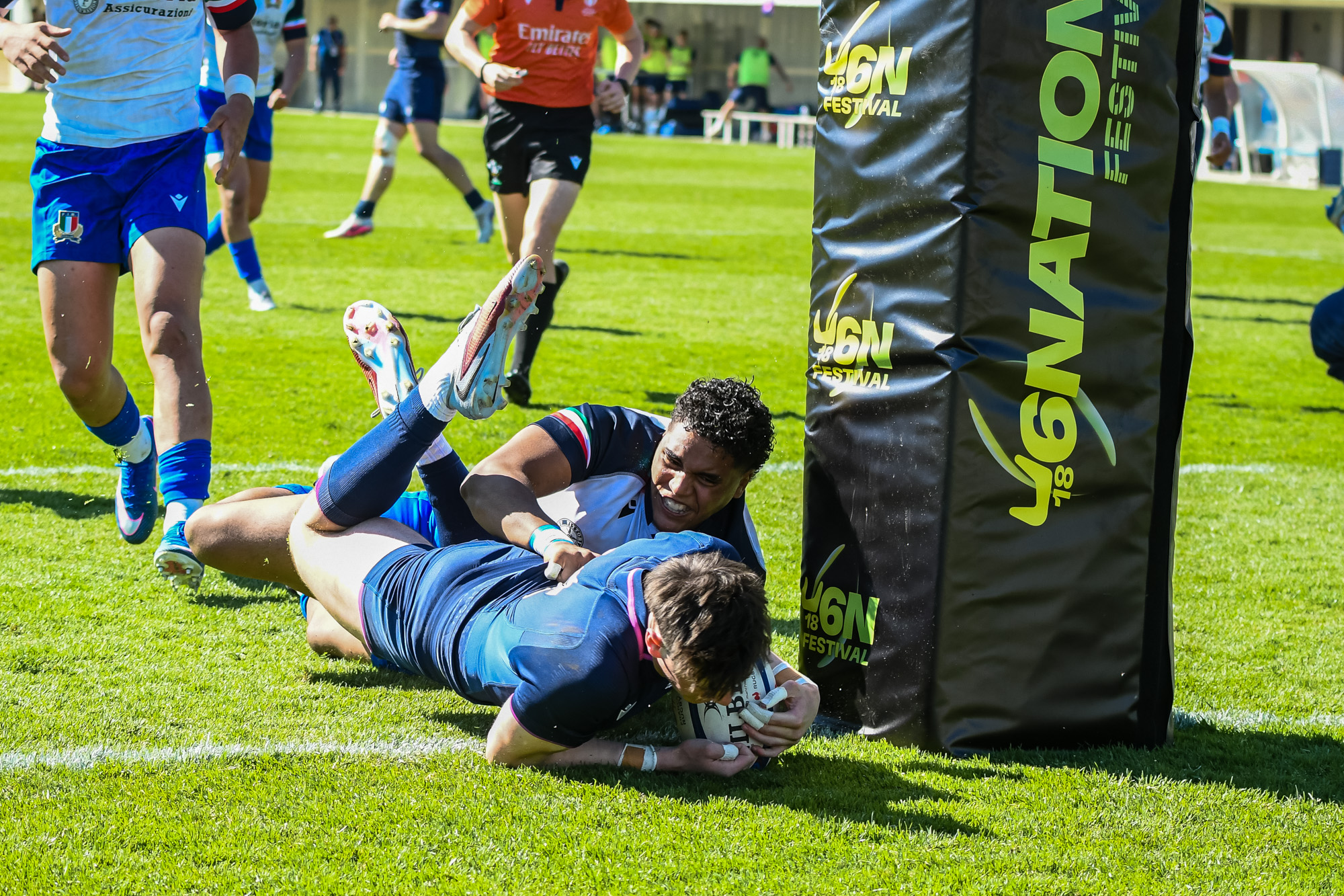 Italy continued to attack, and Oscar Harrison noticed an unmarked blindside on the left wing to coast in untouched from a few metres out. (23-0, 29 mins)