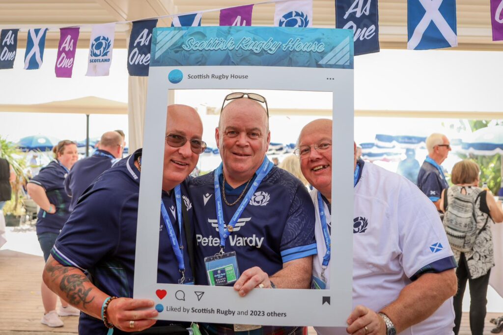 Scotland fans gather at Scottish Rugby House in Nice ahead of Scotland's Rugby World Cup pool match against Tonga.