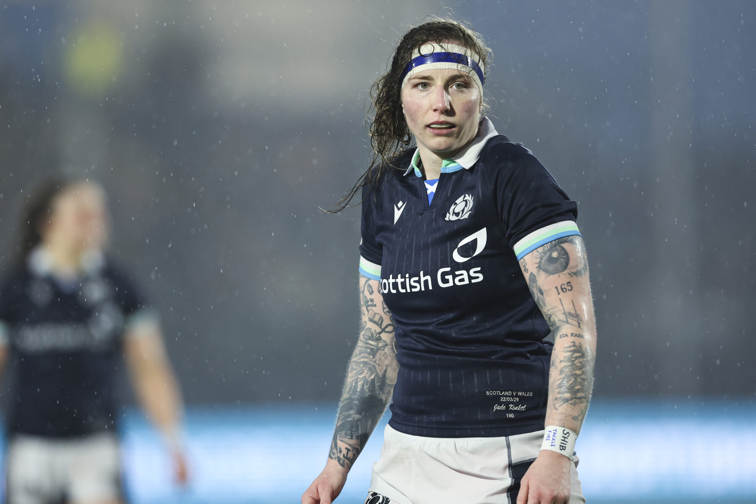 EDINBURGH, SCOTLAND - MARCH 22: Scotland's Jade Konkel in action during a Guinness Women's Six Nations match between Scotland and Wales at The Hive Stadium, on March 22, 2025, in Edinburgh, Scotland. (Photo by Ewan Bootman / SNS Group)